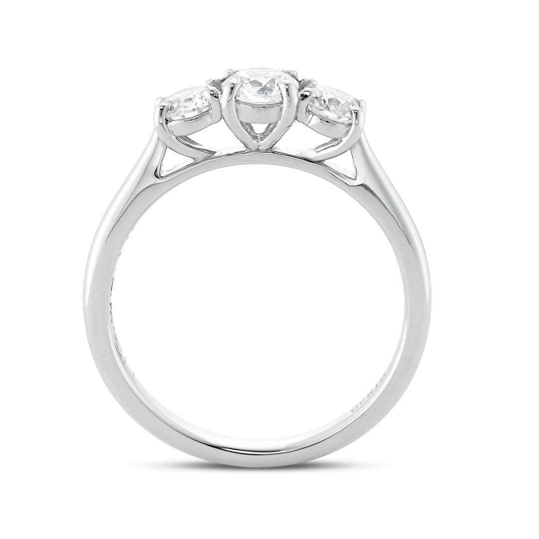 Natural diamonds are admired for their rarity, durability, and enduring brilliance—symbols of love and commitment that also hold intrinsic and appreciating value. Their timeless appeal ensures that fine jewellery of this calibre remains both a cherished keepsake and a sound investment. With a total weight of 4.41 grams and an insurance valuation of £4,995.00, this certified ring combines exceptional craftsmanship, elegance, and lasting worth. A true embodiment of grace and permanence, this three-stone eternity ring celebrates the eternal allure of natural diamonds and the strength of platinum—an exquisite piece designed to be treasured for a lifetime.