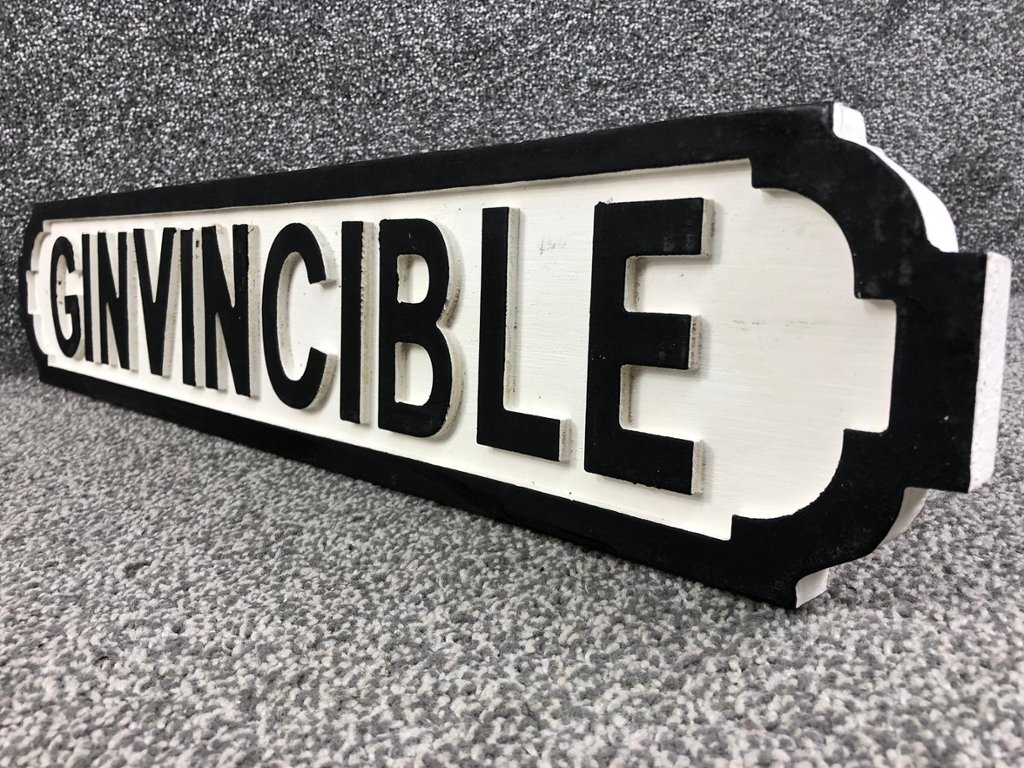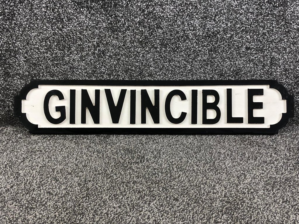 A street sign titled 'Ginvincible'. Approx 6" height, 27" width.