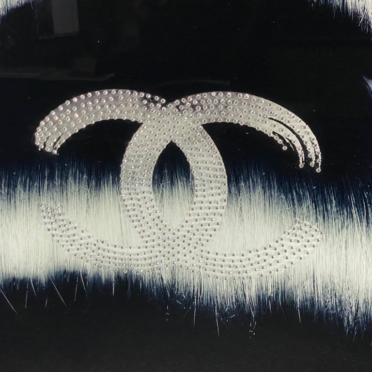 This captivating piece of artwork commands attention with its bold and dynamic depiction of the intricate Fringe design, showcasing meticulous attention to detail and craftsmanship. The designer logo adds a touch of sophistication and luxury, while the sparkling crystal embellishments infuse the artwork with a mesmerising sparkle and brilliance.