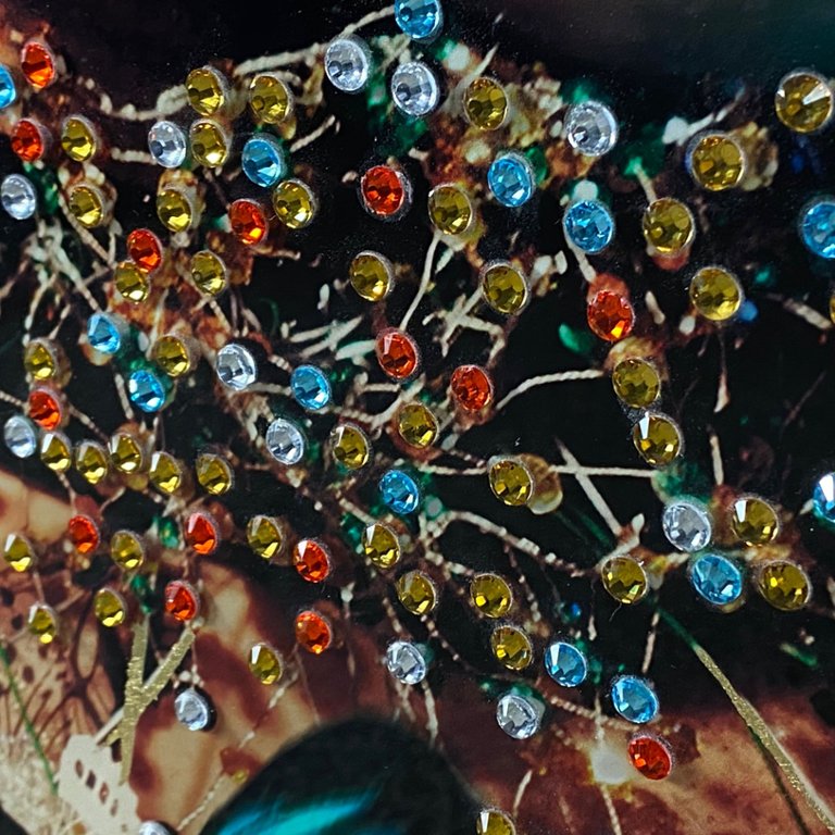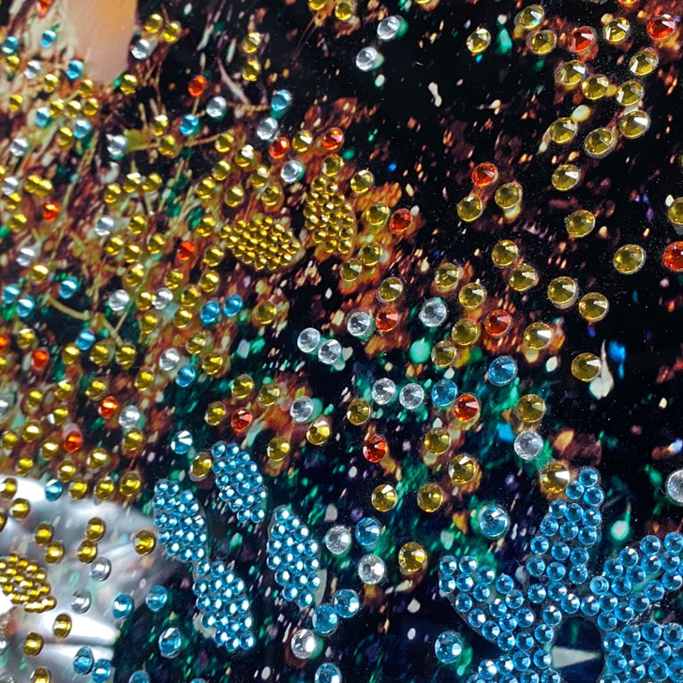 Each crystal embellishment adds a touch of sparkle and brilliance to the artwork, enhancing its allure and captivating the viewer's gaze. The rose gold frame provides a luxurious finishing touch, complementing the soft hues of the girl's attire and the delicate wings of the butterflies.