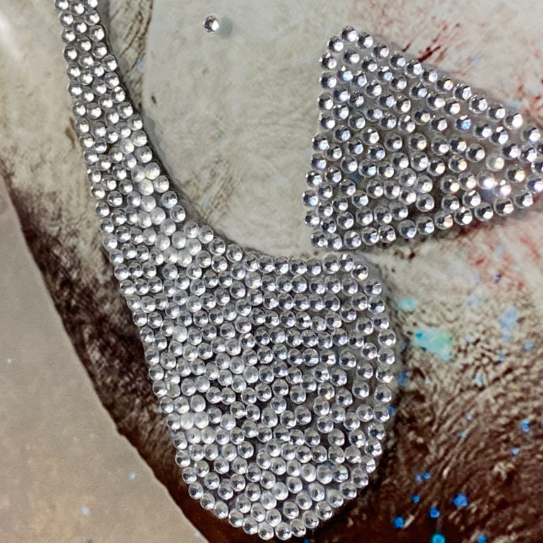 Enhanced with delicate crystal embellishments that shimmer and sparkle under the light, this piece adds a touch of glamour and sophistication to any room. Encased in a sleek silver frame, the artwork exudes modern elegance and versatility, making it ideal for a variety of interior styles.