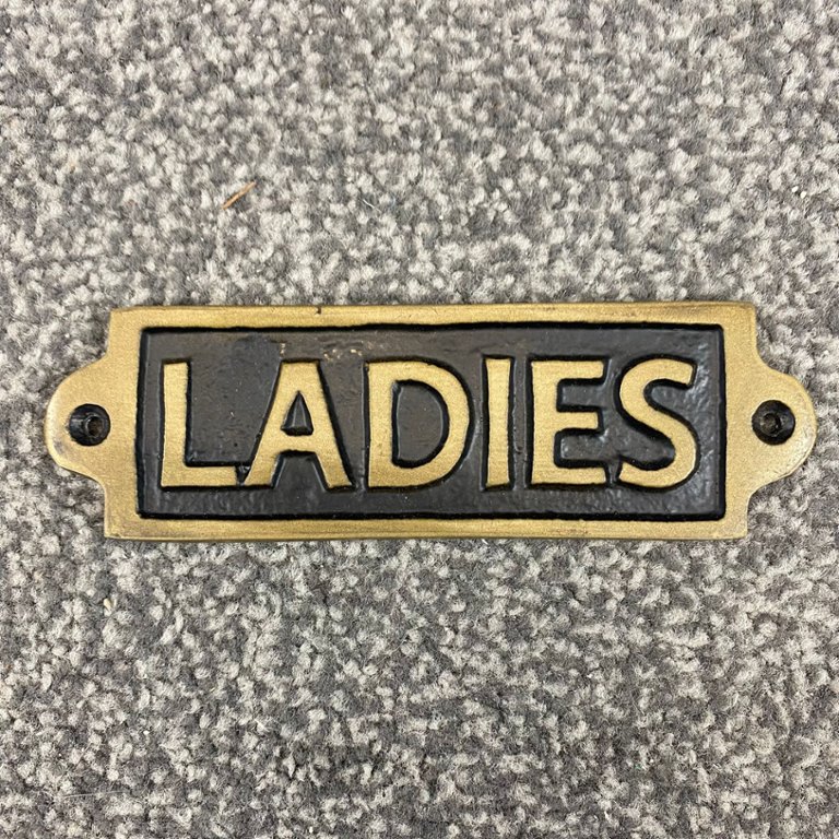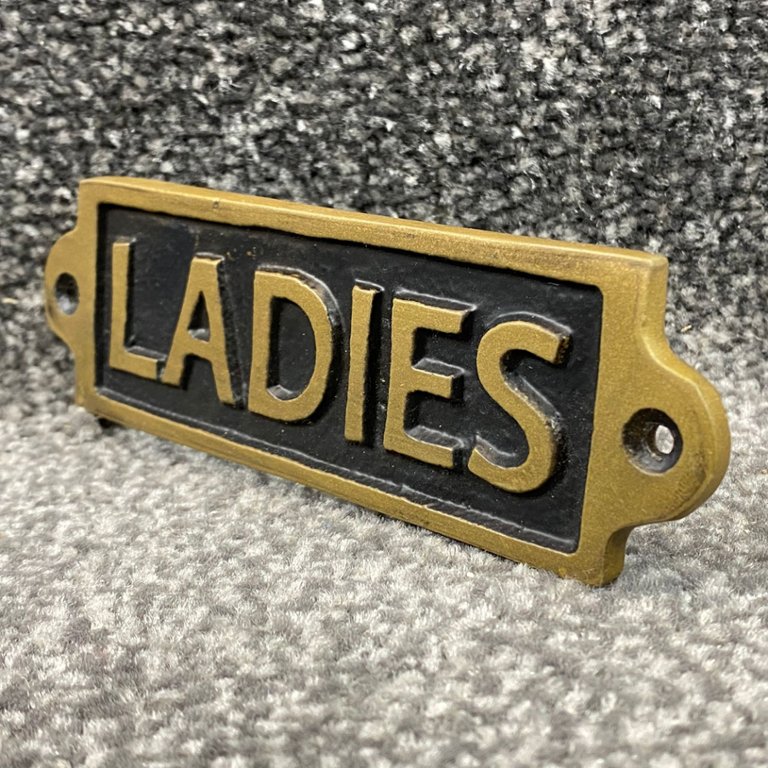 A gold & black Ladies' wall plaque. Approx 2" height, 6" width.