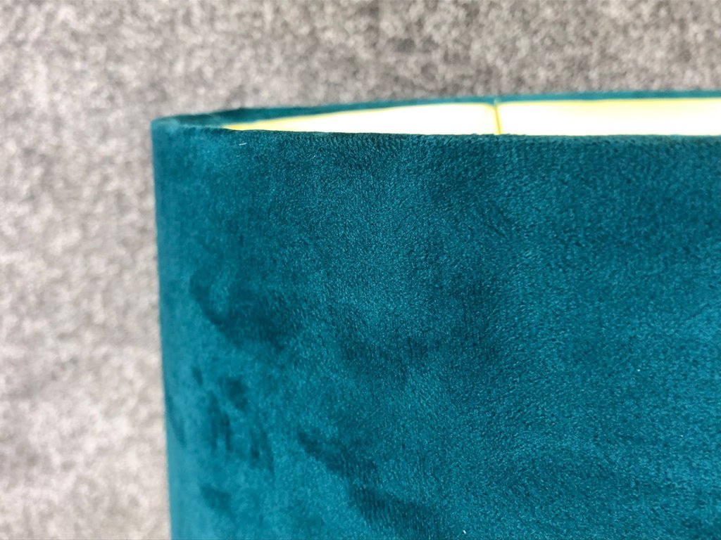 Topping the design is a luxurious blue velvet shade that adds a rich contrast to the gleaming gold base. The soft texture and vibrant hue of the shade create a stunning visual balance, diffusing the light beautifully to cast a warm and inviting glow.