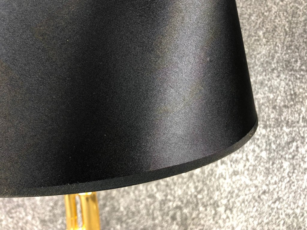 A gold AK47 design table lamp with black shade. Approx 39" height, 18" width.