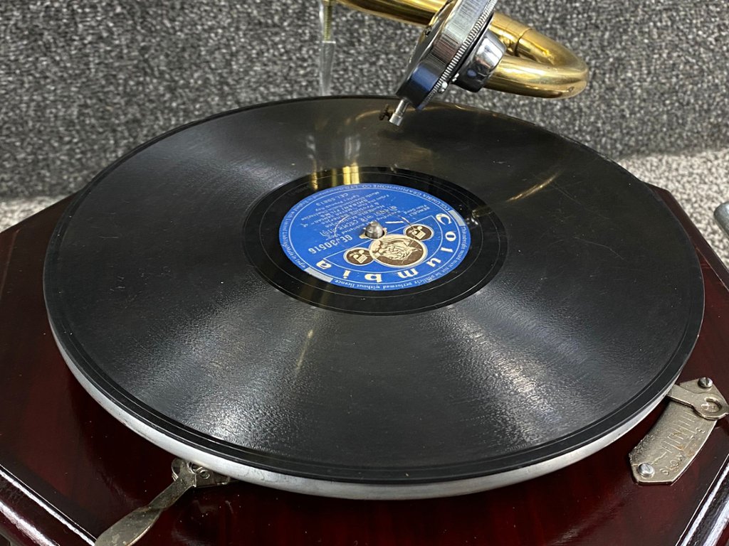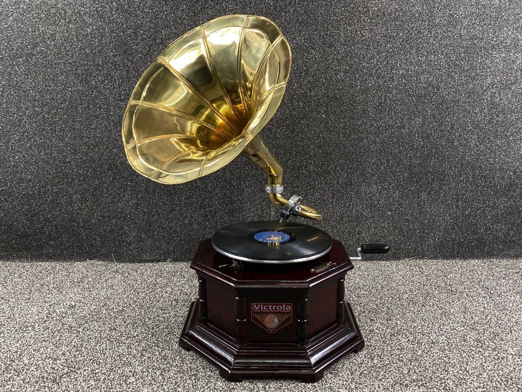 - > Gramophone with Brass Horn