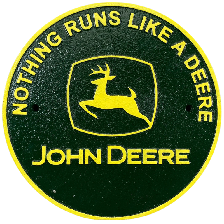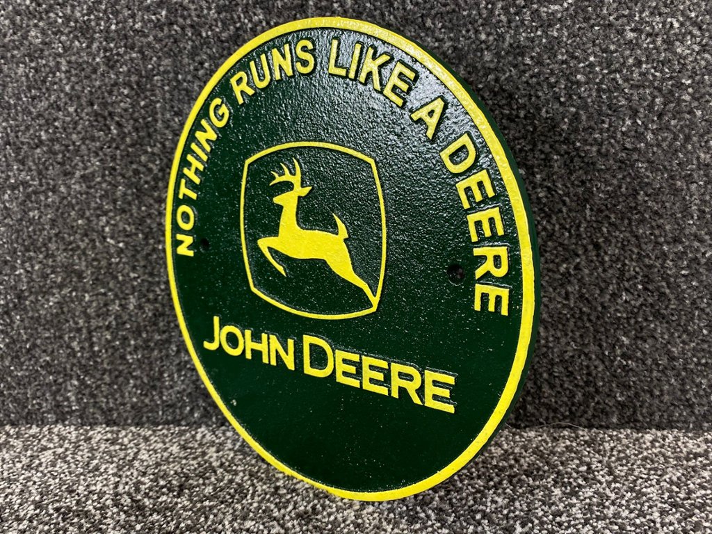 - > Green & Yellow John Deere Cast Iron Wall Sign