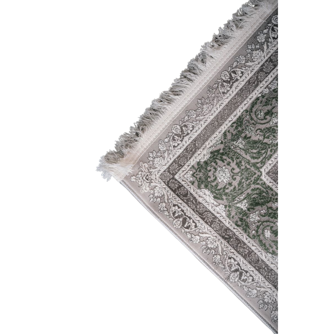 A green finely woven, soft touch persian style carpet. Approx 150cm x 230cm