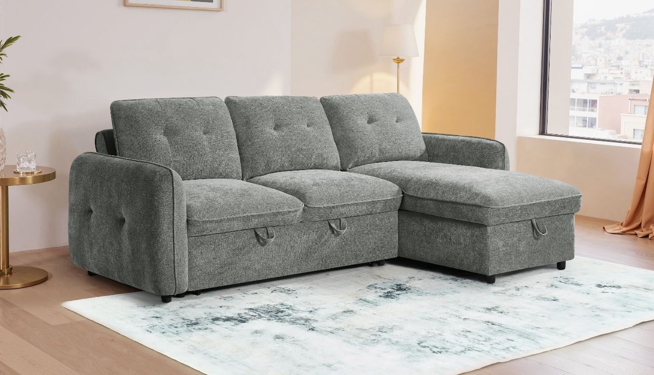 A grey Venice sofa bed offers a clean, contemporary profile,