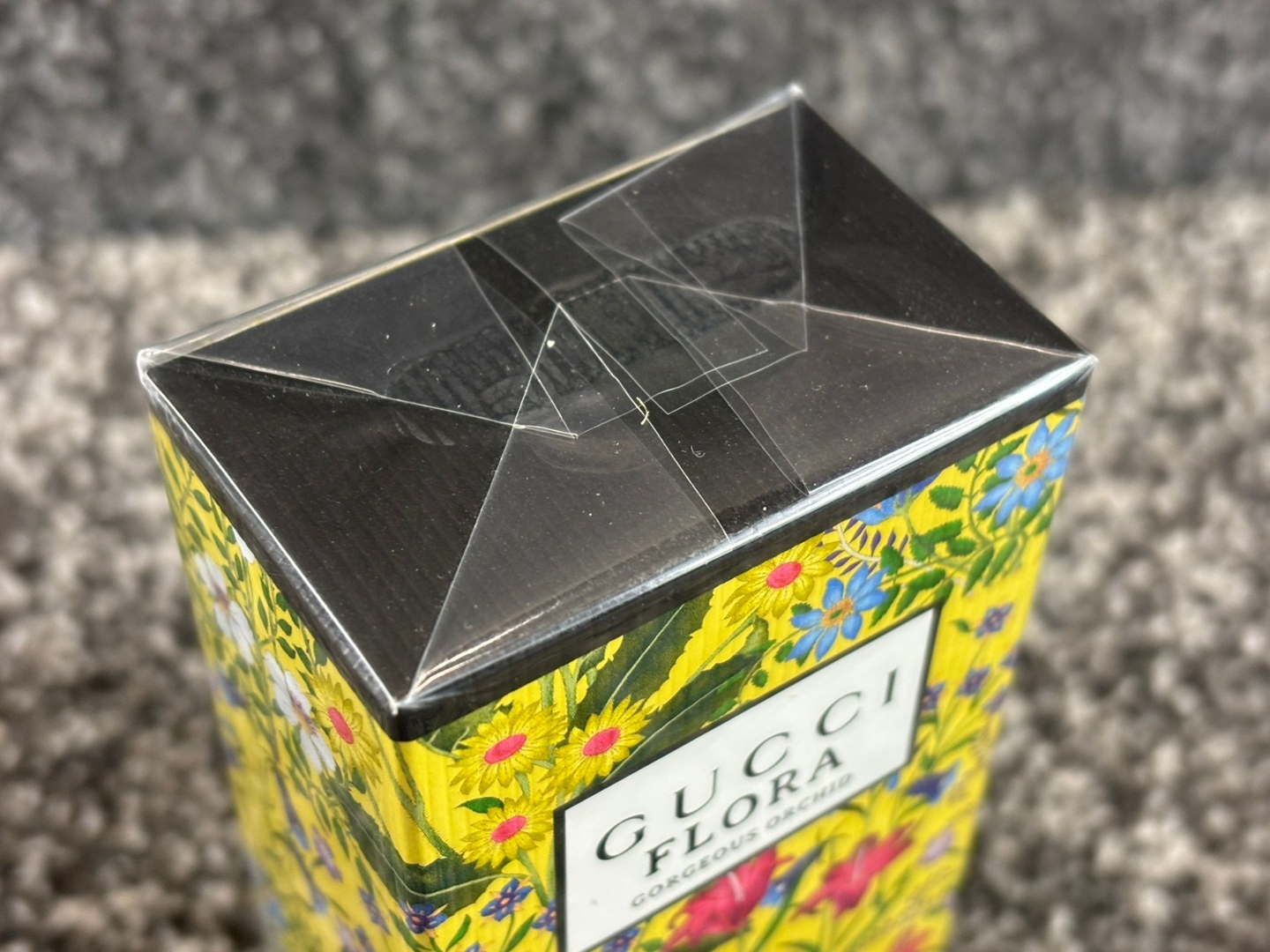 A bottle of Gucci - Flora Gorgeous Orchid Eau De Parfum in a presentation box.