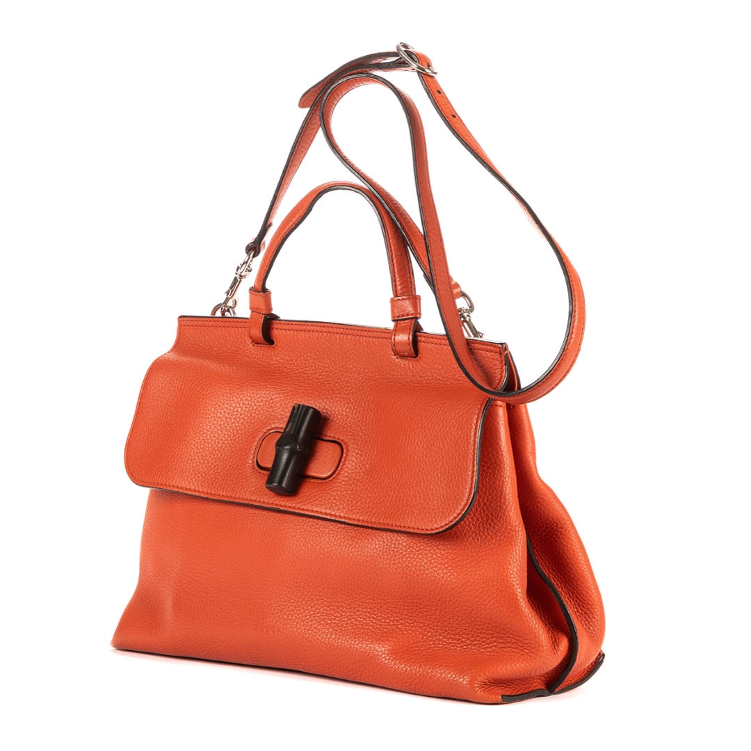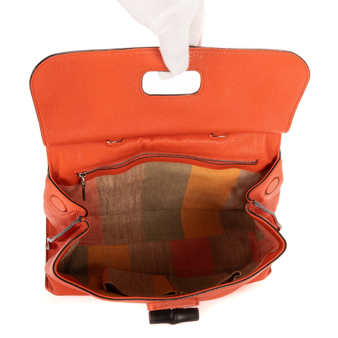 A vintage Gucci orange calf leather Bamboo Daily Top Handle bag with a certificate of authenticity, Approximately 25cm height, 33cm width.