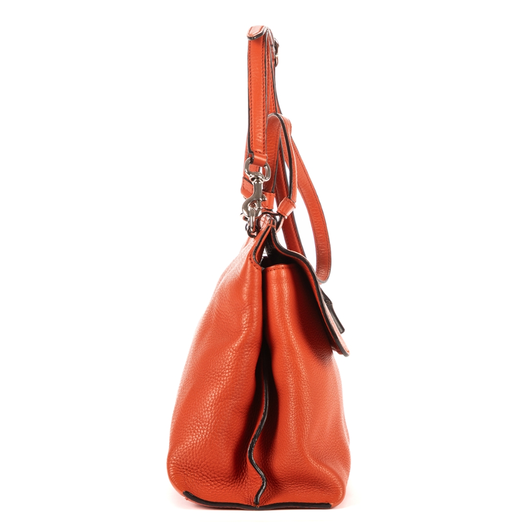 A versatile and functional design, the bag features sturdy top handles alongside a detachable shoulder strap for flexible styling. The spacious interior is ideal for everyday essentials, while the secure flap closure ensures practicality without compromising on elegance. Measuring approximately 25cm in height and 33cm in width, it offers a well-balanced profile suited to both day and evening use.