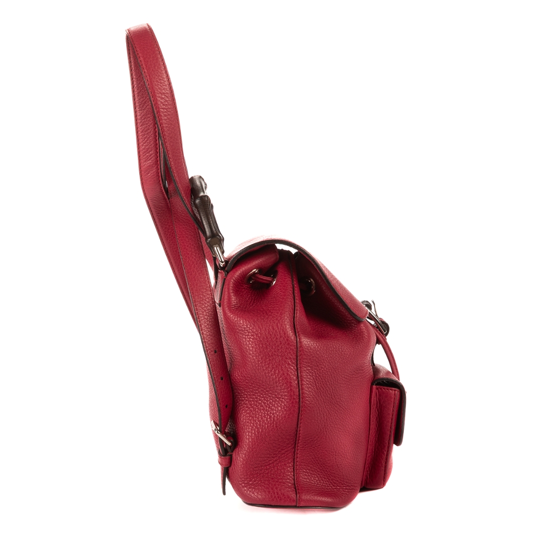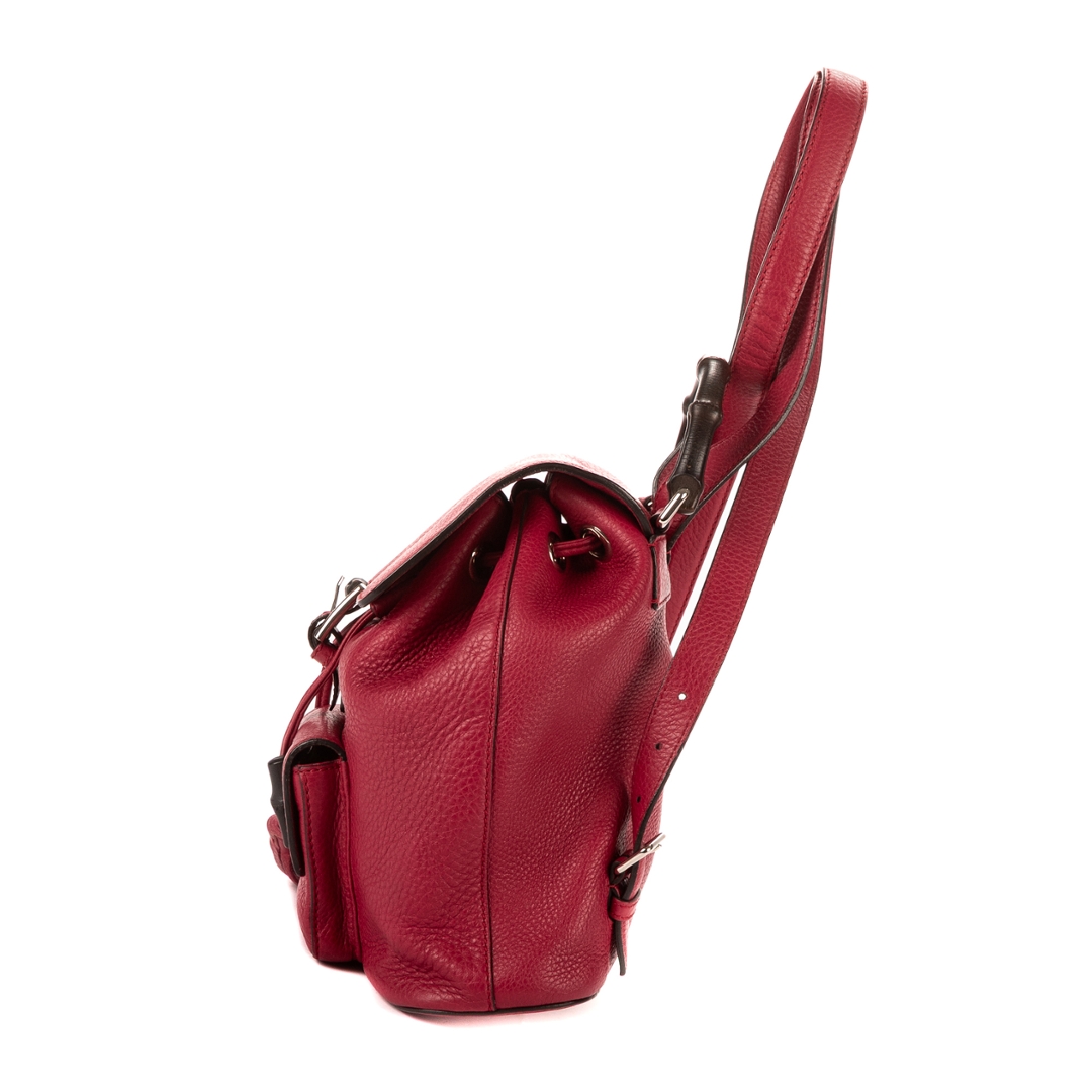 A vintage Gucci fuchsia calf leather Bamboo Tassel Backpack with a certificate of authenticity, Approximately 28m height, 24cm width.