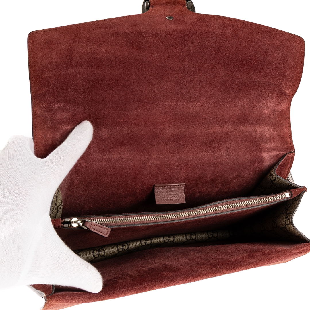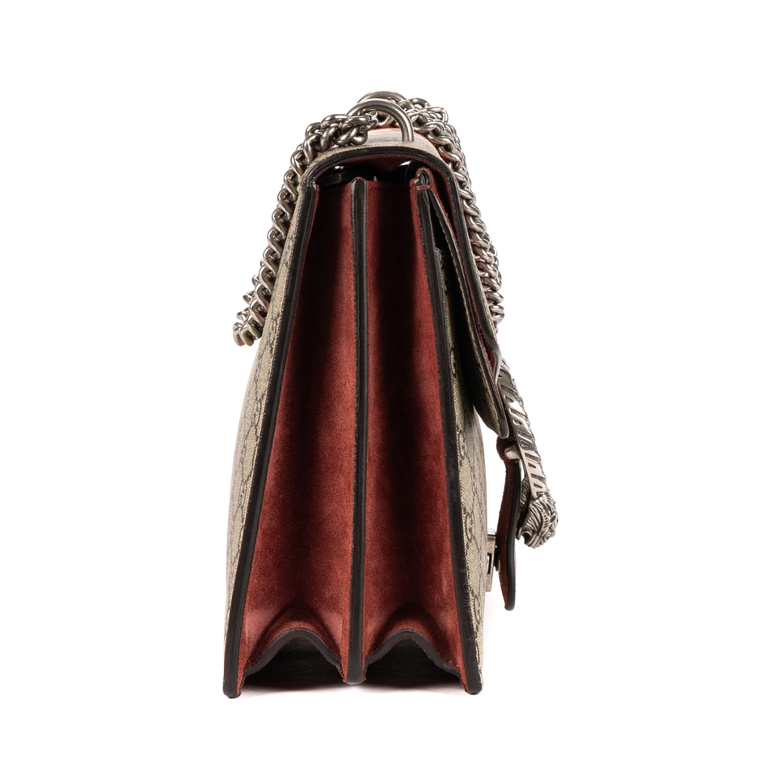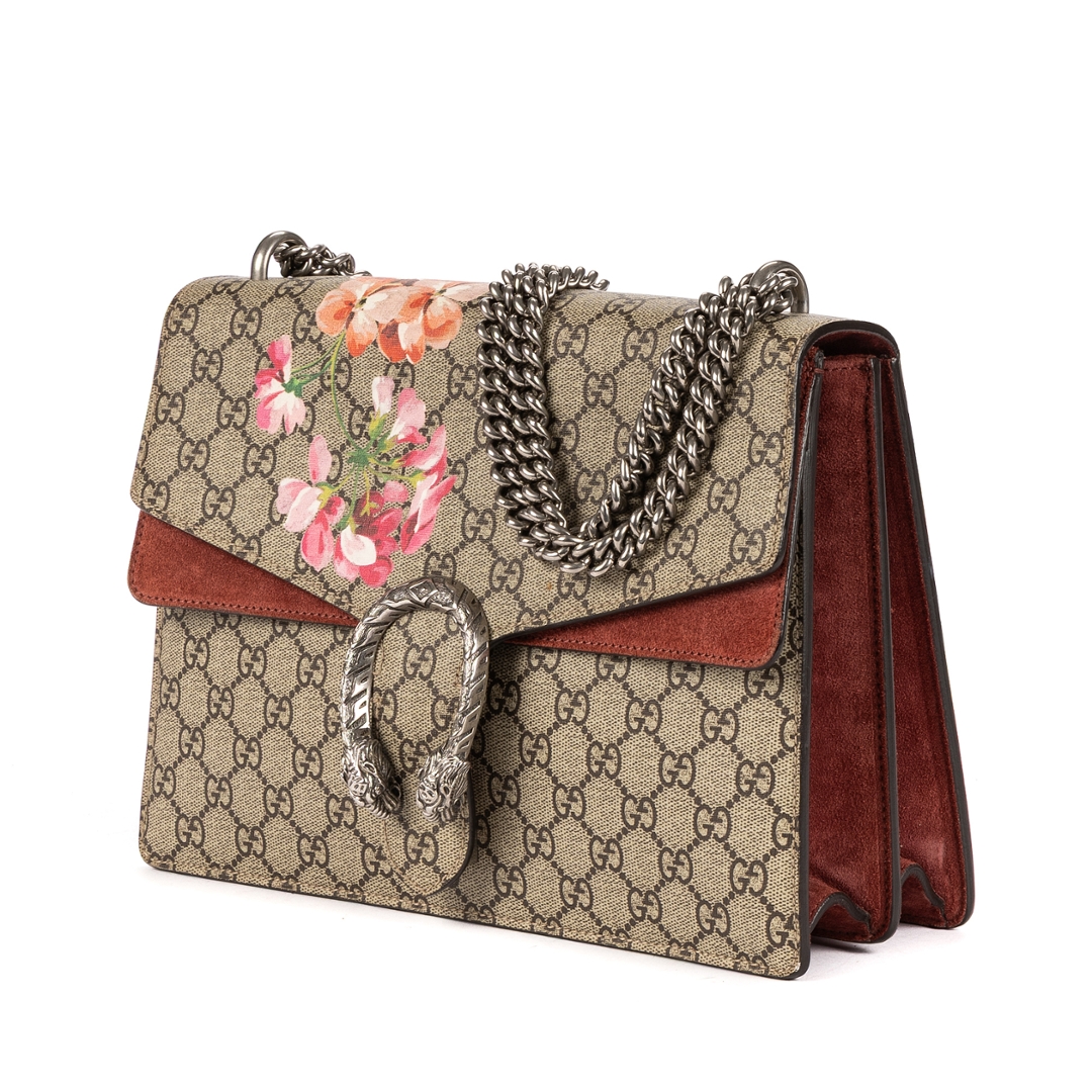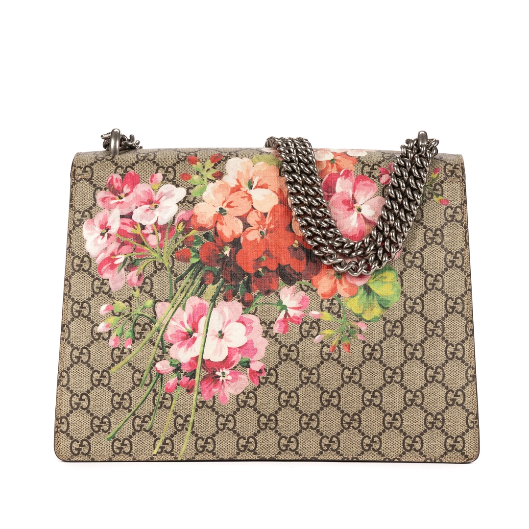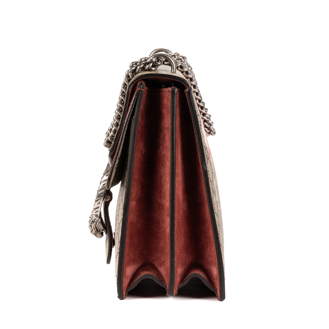 A highly sought-after vintage piece, complete with a certificate of authenticity, this Blooms Dionysus bag represents a standout addition for collectors and fashion enthusiasts. Its combination of iconic Gucci motifs and statement detailing ensures enduring desirability and strong performance on the secondary market.