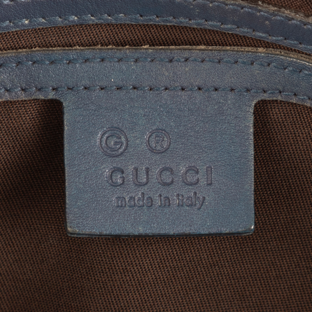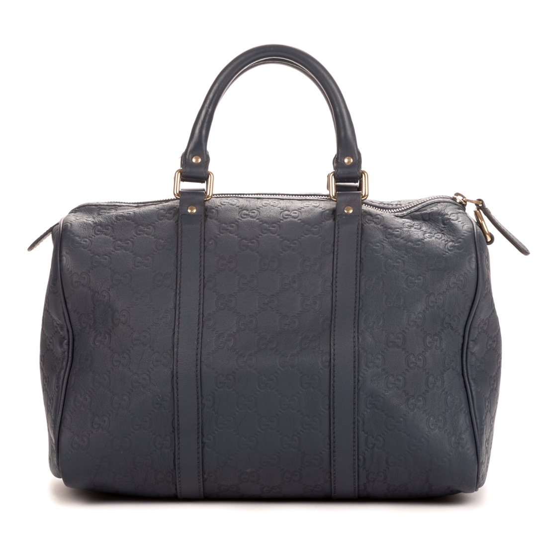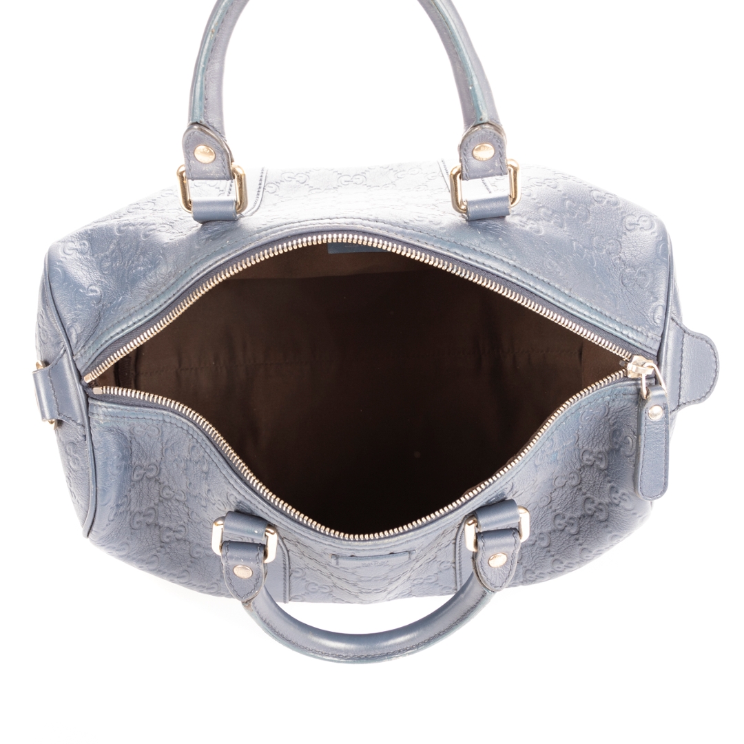 A vintage Gucci cobalt calf leather Boston bag with a certificate of authenticity, Approximately 21cm height, 32cm width.