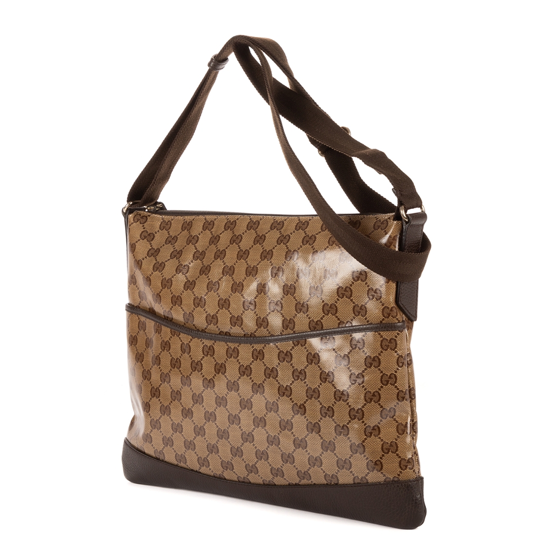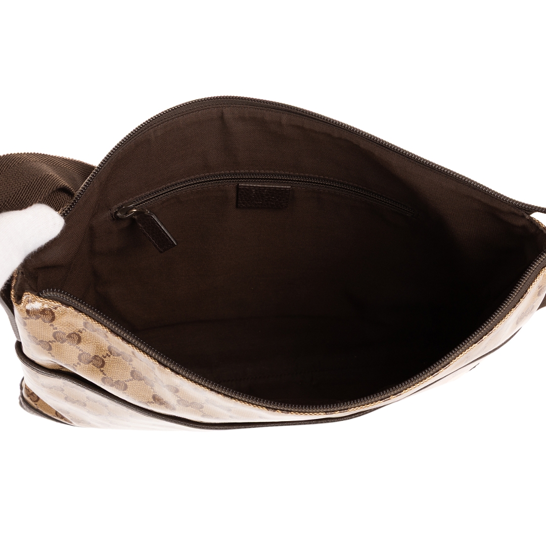 A vintage Gucci beige/dark brown calf leather Flat Messenger bag with a certificate of authenticity, Approximately 31cm height, 38cm width.