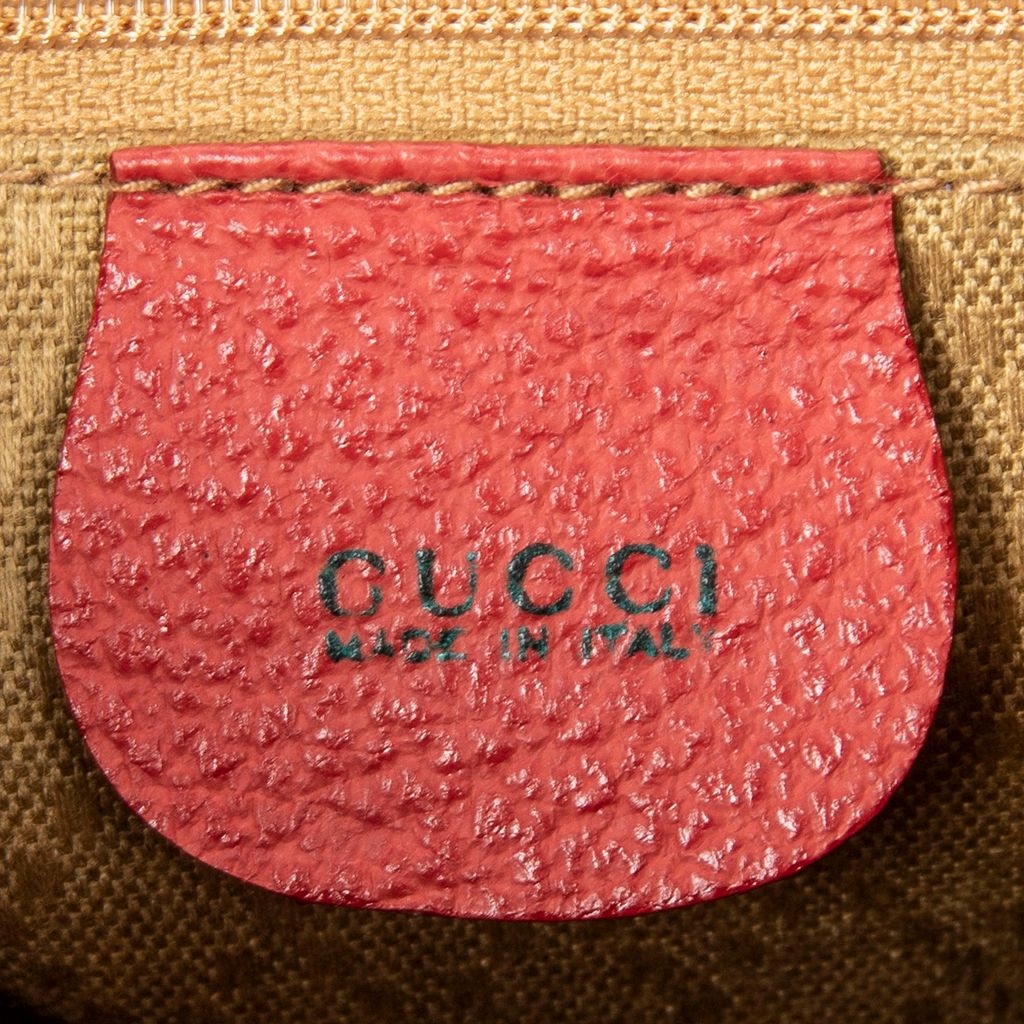 A vintage Gucci red calf leather Large Bamboo Backpack bag with a certificate of authenticity, Approximately 30cm height, 30cm width.