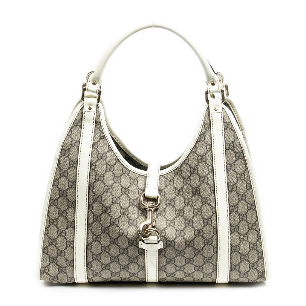 A vintage Gucci beige/white coated canvas Large Joy Shoulder Tote bag with a certificate of authenticity, Approximately 31cm height, 38cm width.