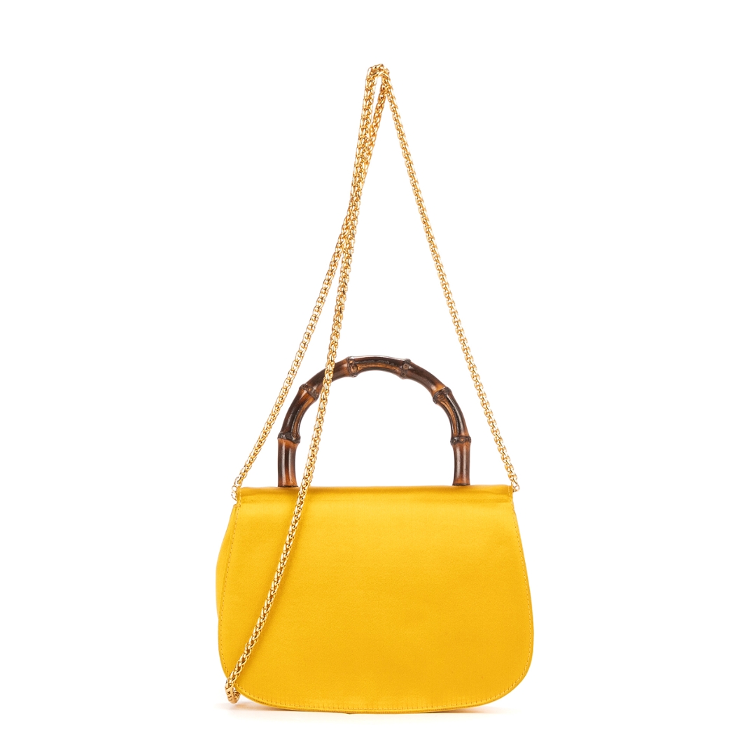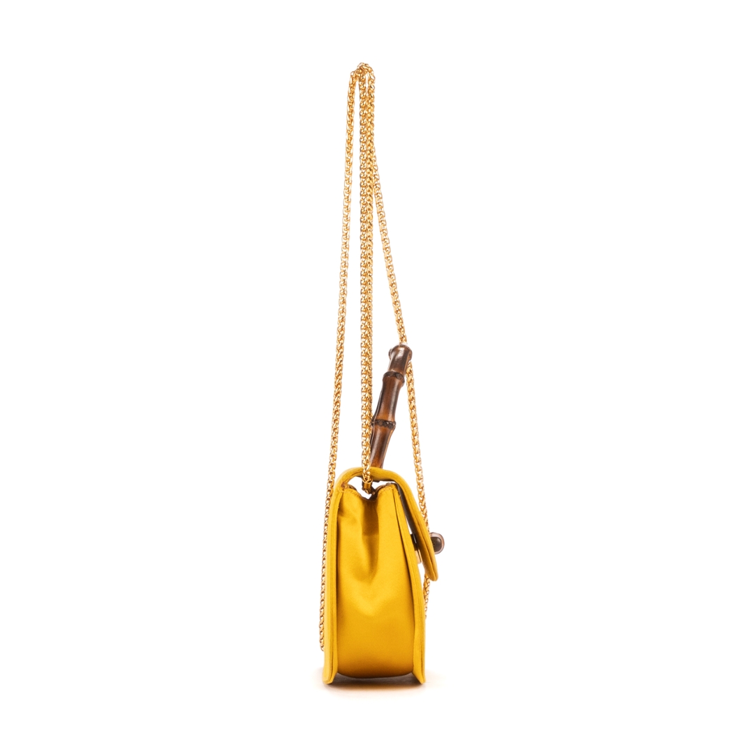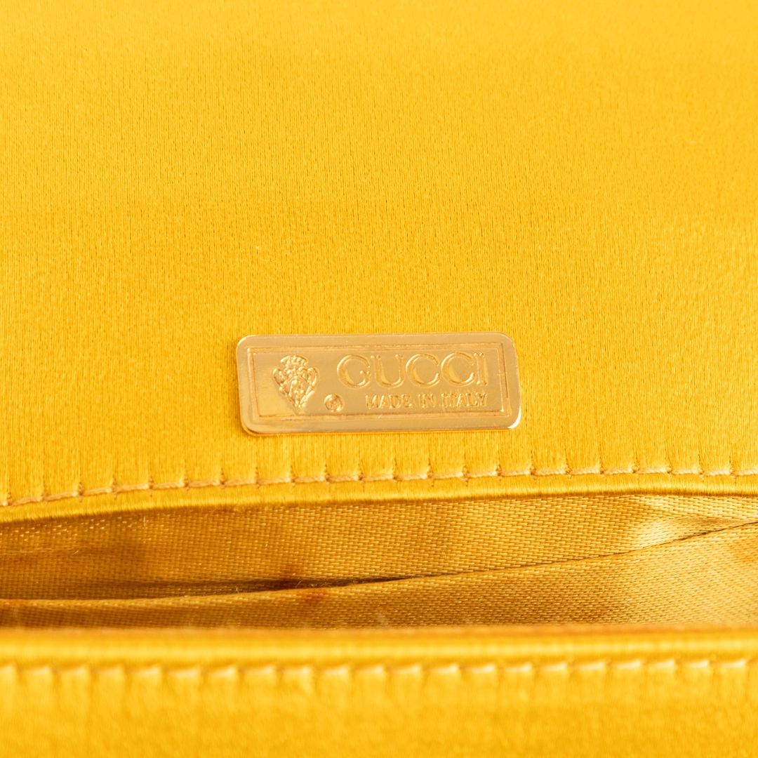 A vintage Gucci yellow canvas Night Evening bag with a certificate of authenticity, Approximately 12cm height, 17cm width.