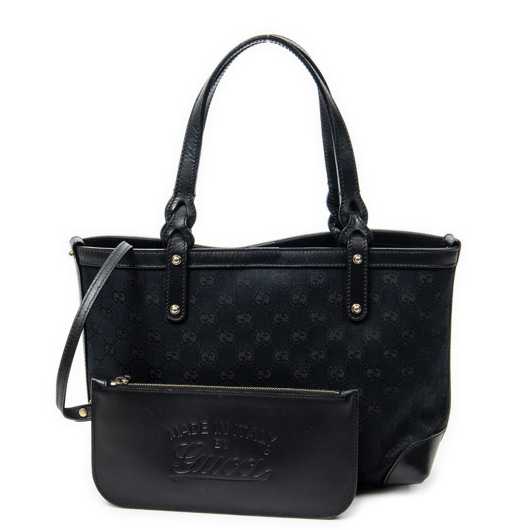 A vintage Gucci black canvas Small Craft Tote bag with a certificate of authenticity. Approximately 19cm height, 32cm width.
