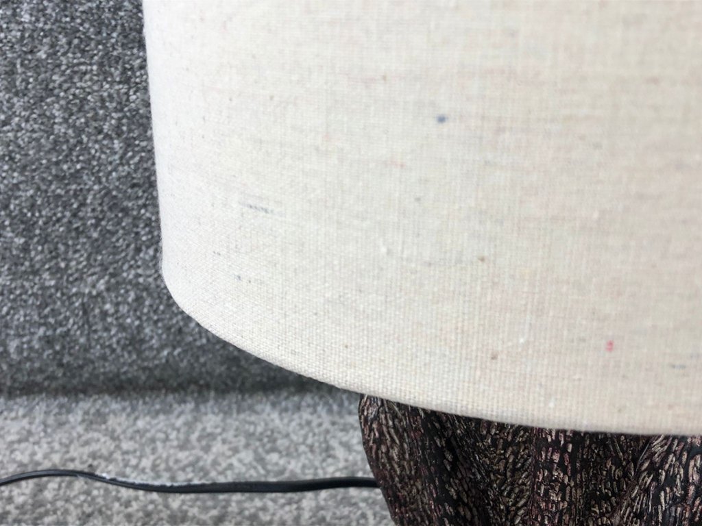 Complementing the base is a soft linen shade, which adds a warm and inviting glow to your space. The neutral tone of the shade enhances the lamp's natural appeal, creating a harmonious and serene ambience.