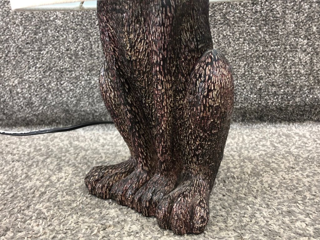 Crafted with meticulous attention to detail, the lamp features a regal hare figurine, the lifelike representation of the hare's serene stance adds a touch of natural beauty and sophistication to any room.