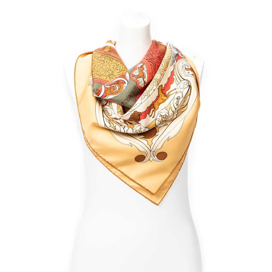 Accompanied by its certificate of authenticity, this Grade AA example is in excellent condition, showing only the lightest signs of careful use. A sophisticated and versatile accessory, the Hermès beige and brown silk scarf remains a highly desirable piece, perfect for collectors and fashion enthusiasts who value the artistry and enduring prestige of the maison.