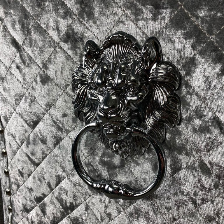 Introducing the epitome of sophistication and elegance: the Honeysuckle Crushed Velvet High Back Lion Knocker Design Dining Chairs on Chrome Legs. These exquisite dining chairs seamlessly blend luxurious comfort with striking design elements, making them the perfect addition to your dining room.
