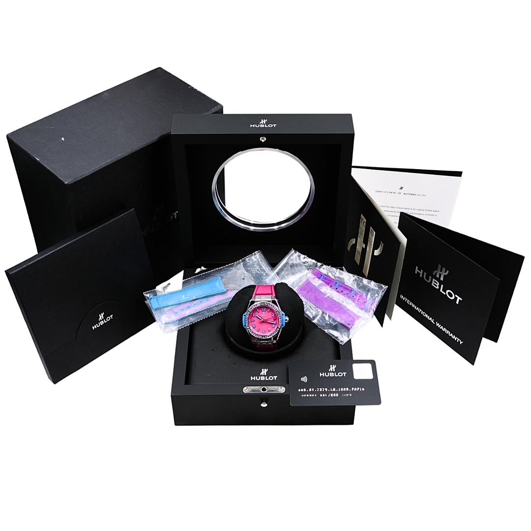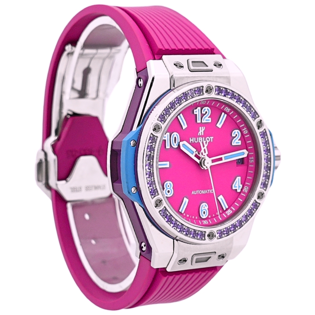 Hublot Big Bang One Click Pop Art Watch, Pink Rubber Strap with a Steel Case & Clasp on an Amethyst Set Bezel on a Pink Dial