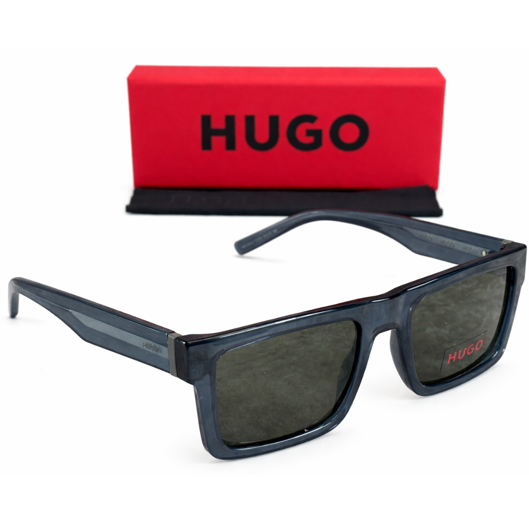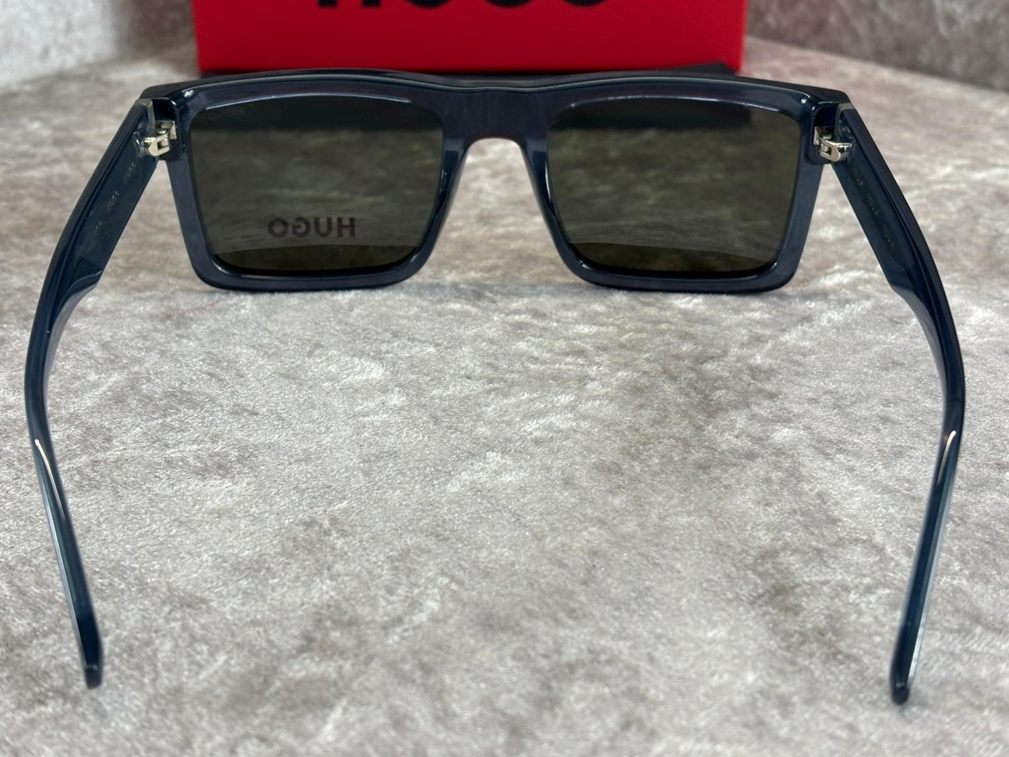Crafted with attention to detail, the translucent blue frame reveals subtle depth and character, complemented by refined HUGO branding at the temples and lens. The lightweight construction ensures comfortable wear, while the straight top line creates a sharp, fashion-forward aesthetic that stands out without overpowering your look. This is a design that blends urban attitude with premium craftsmanship.