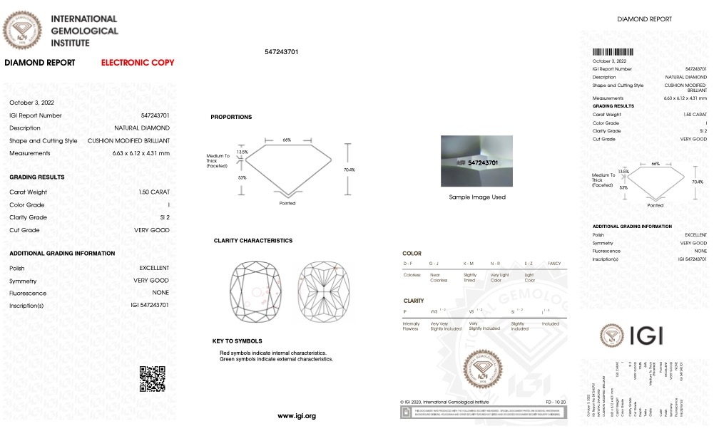 This ring has its unique IGI serial number laser-engraved on the diamond.