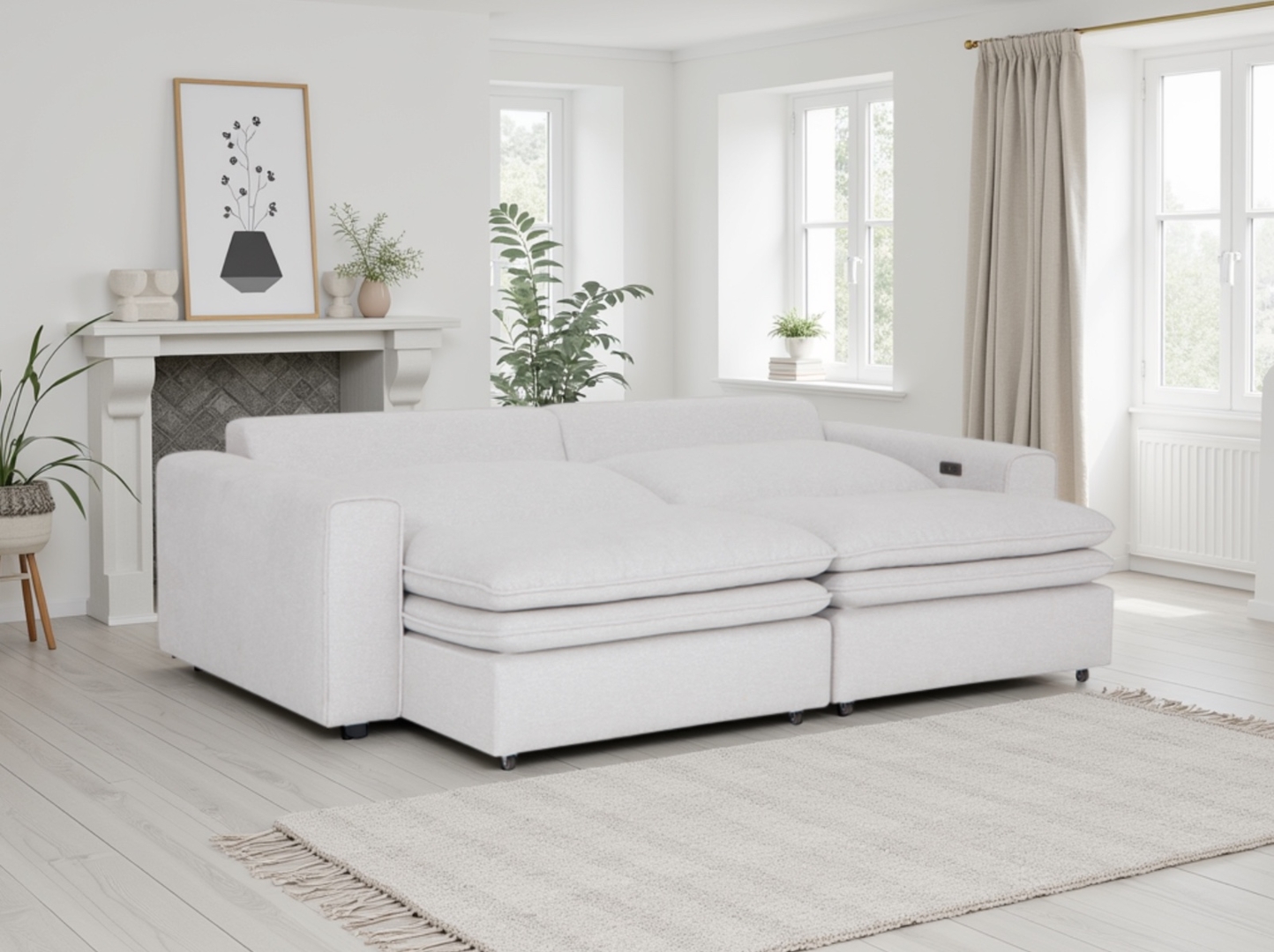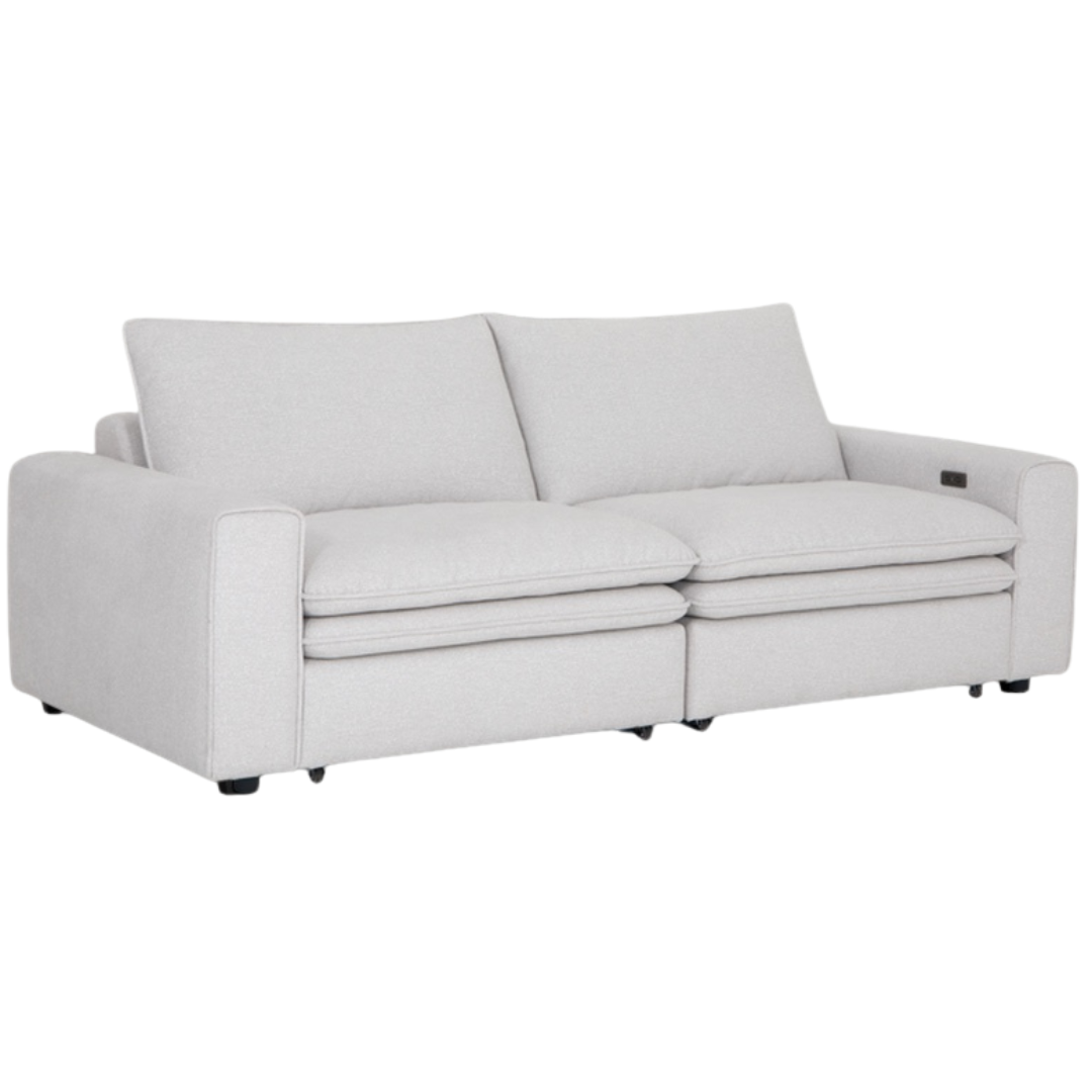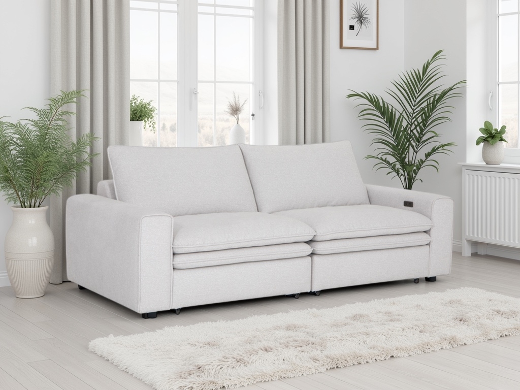 An Ivory Cloud Electric Sofa is a beautifully crafted statement piece that blends soft, cloud-like comfort with smart, modern technology. Wrapped in a gentle ivory fabric and elevated on contemporary black legs, this sofa radiates elegance while offering practical features that make everyday lounging feel luxurious.