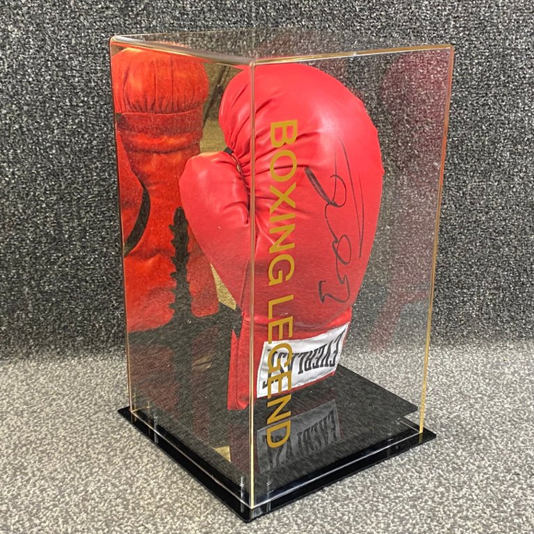 A signed & authenticated Kell Brook Red Boxing Glove in a presentation case. Approx 15" height, 9" width.