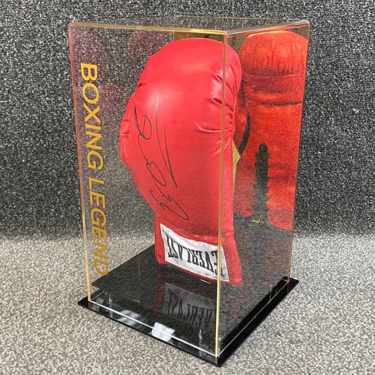Presented in a sleek and sophisticated presentation case, this piece makes for a striking display in any sports memorabilia collection. Whether showcased in a personal trophy room, a sports bar, or a dedicated boxing gym, the Kell Brook red boxing glove stands as a testament to the talent and achievements of one of Britain's most celebrated boxers.