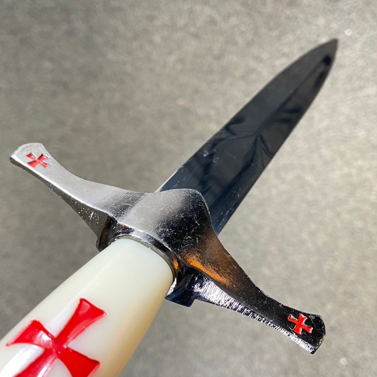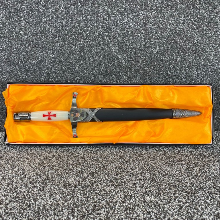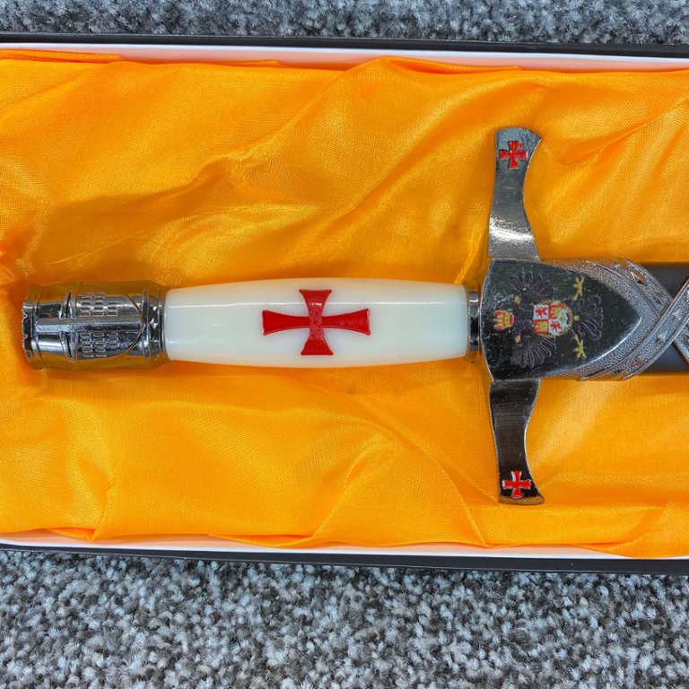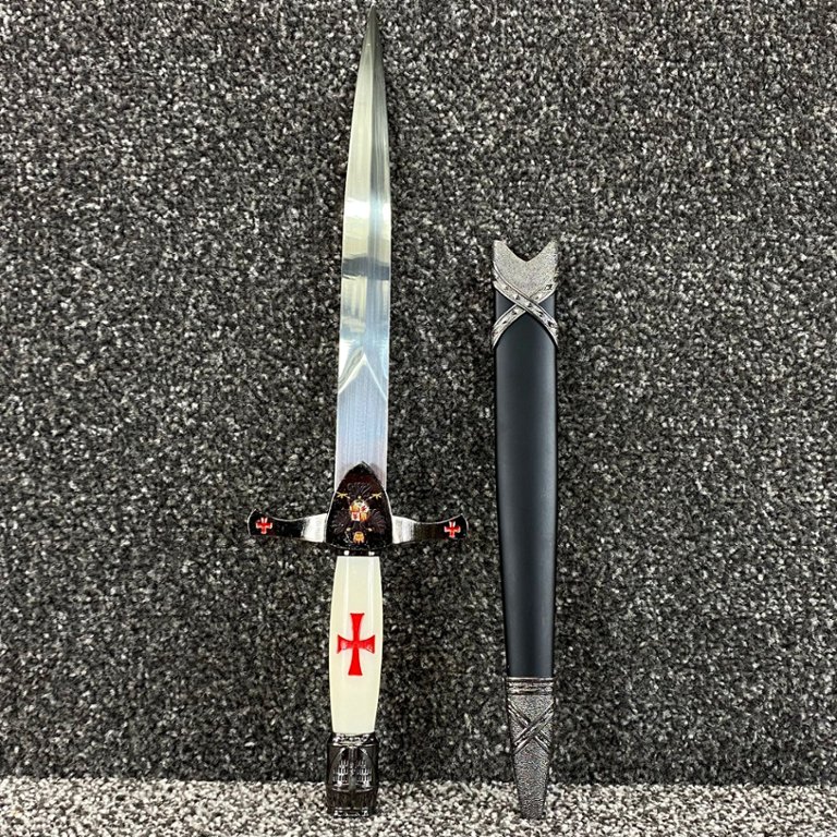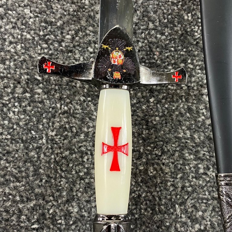 Measuring approximately 16 inches in overall length, this Knight sword exudes authority and nobility. The blade is expertly crafted to mirror the sleek and formidable design seen in the armouries of knights, featuring a finely honed edge and intricate detailing along its length.