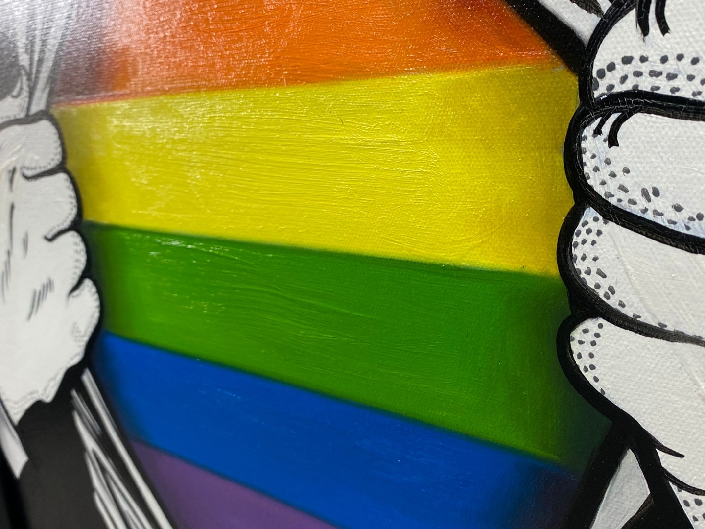 "Revelation" by the artist Gage is a striking original oil painting that conveys a powerful message of identity and pride. Measuring 90cm by 60cm, this artwork depicts an individual opening their shirt to reveal a vibrant rainbow flag beneath. The flag’s bold, colourful stripes are portrayed with vivid detail, symbolizing a profound and liberating moment of self-expression and inclusivity.