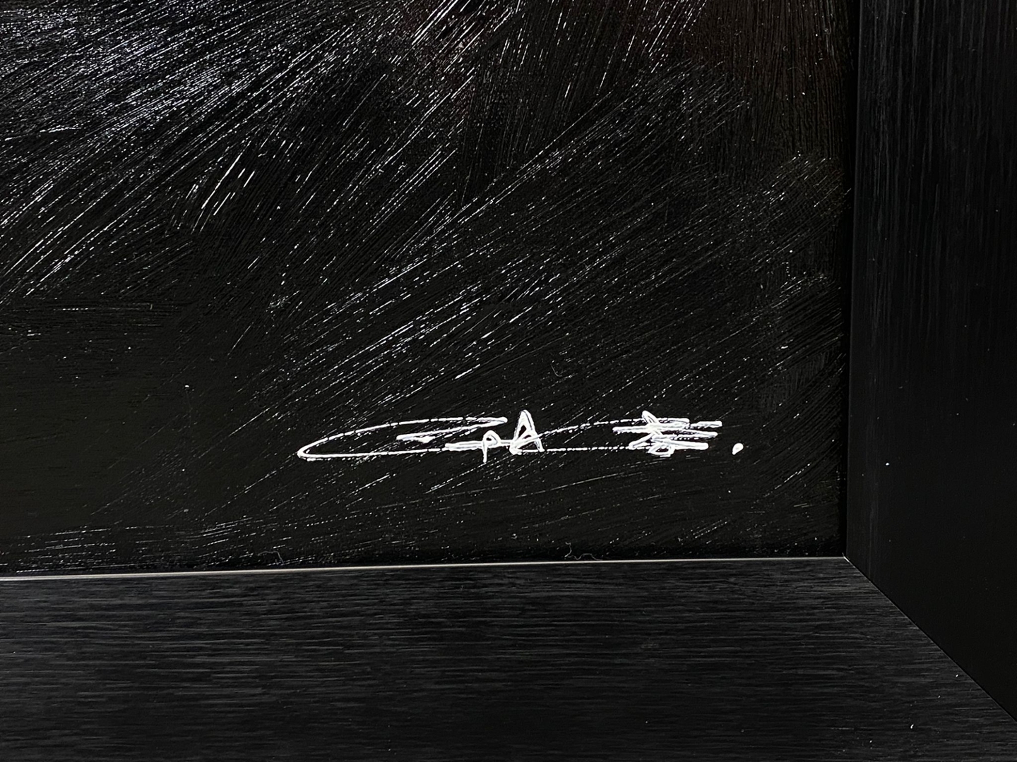 A black & silver framed original oil painting by the artist Gage titled Revelation.