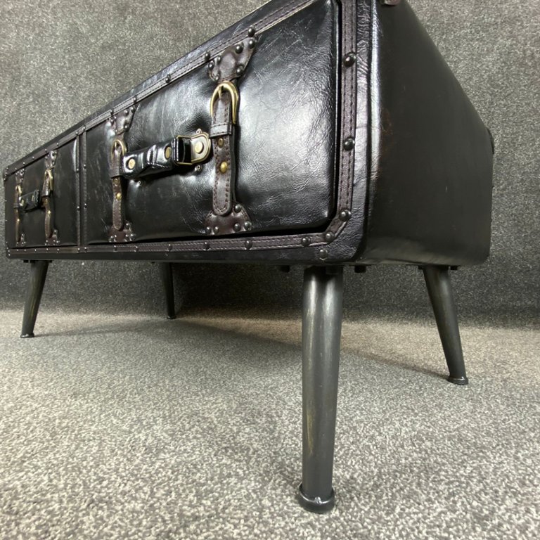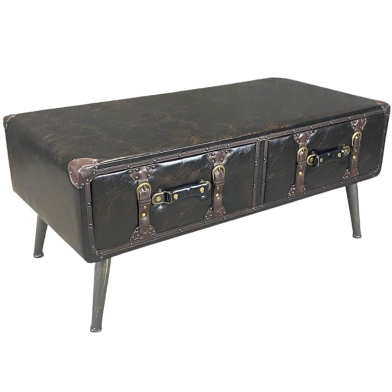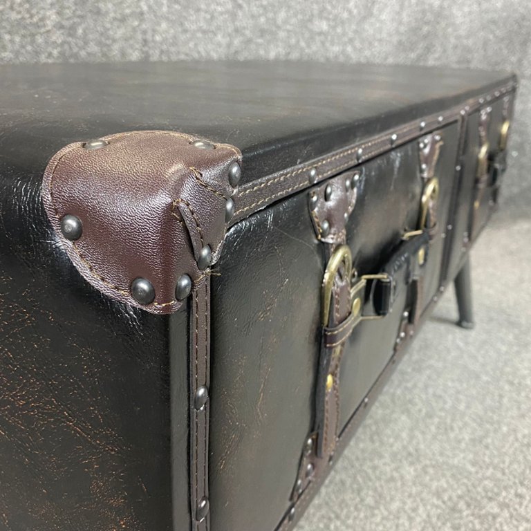 Crafted from high-quality leather, this coffee table boasts studded accents and copper clasps that add a touch of vintage-inspired flair. The handbuilt construction ensures each detail is meticulously crafted, resulting in a unique and timeless piece that will be cherished for years to come.
