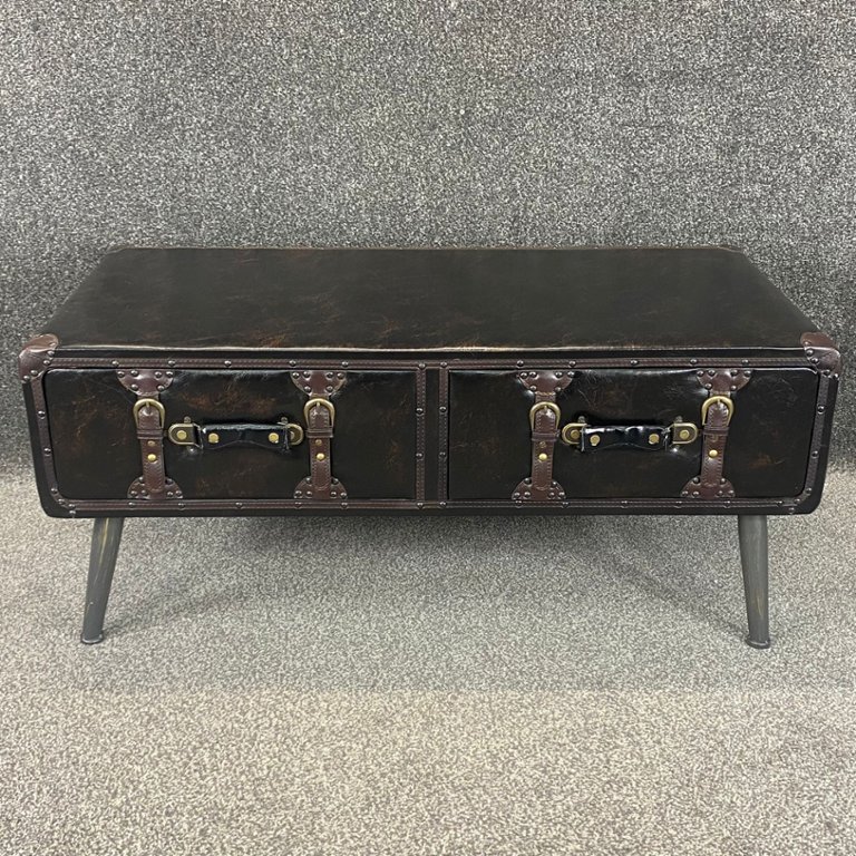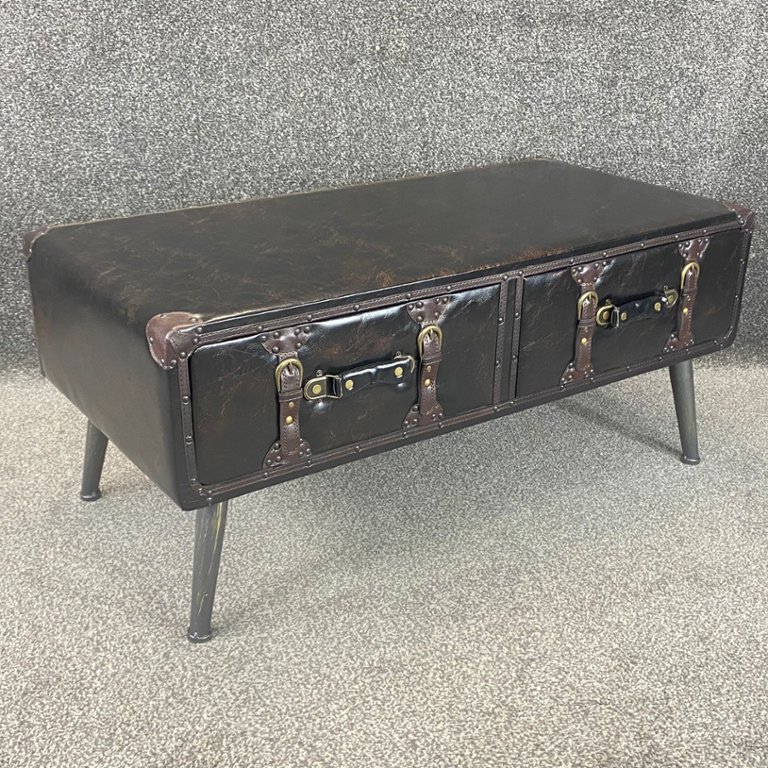 Whether used as a centrepiece for entertaining guests or as a functional storage solution, the Handbuilt Leather Studded & Copper Clasp Two Drawer Coffee Table is sure to make a statement in your home. Elevate your living space with this exquisite piece and add a touch of rugged elegance to your decor.