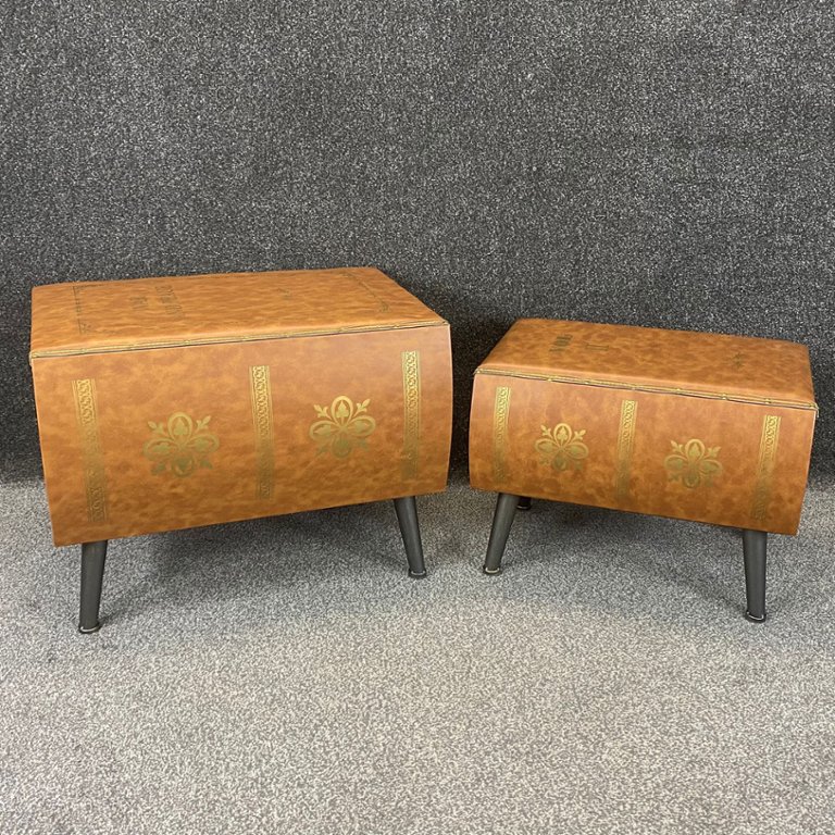 A handbuilt leather 'War & Peace' book style set of a large & medium storage trunks on four legs. Approx 18" height, 24" width, 16" depth - Large.