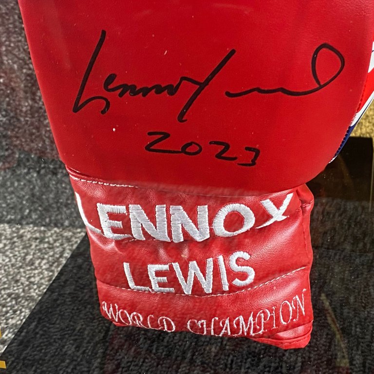 - > Lennox Lewis Signed Red Union Jack Boxing Glove