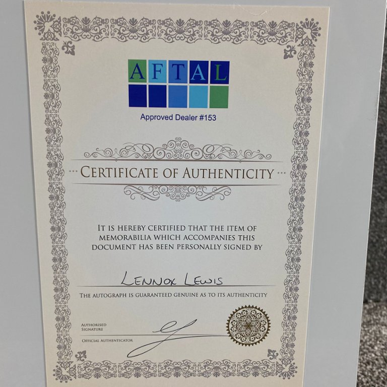 Whether showcased in a personal collection, sports memorabilia gallery, or prominent display, this signed and authenticated boxing glove captures the essence of Lewis's illustrious career and lasting legacy. It serves as a tangible reminder of his unparalleled skill, dedication, and contributions to the sport of boxing.