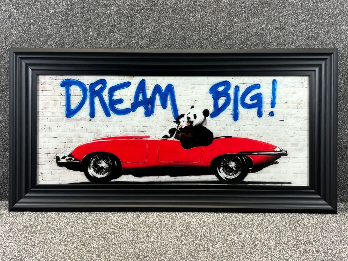 A black framed liquid art picture by Banksy titled Dream Big.
