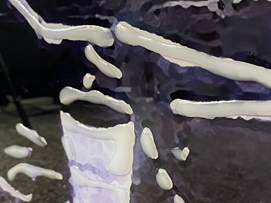 The black frame surrounding the artwork provides a structured contrast, framing the composition with a sense of gravity and focus. Its sleek and modern design complements the artwork's thematic depth, ensuring that the piece commands attention and invites contemplation in any setting—from public exhibitions to private collections where its message can provoke dialogue and introspection.
