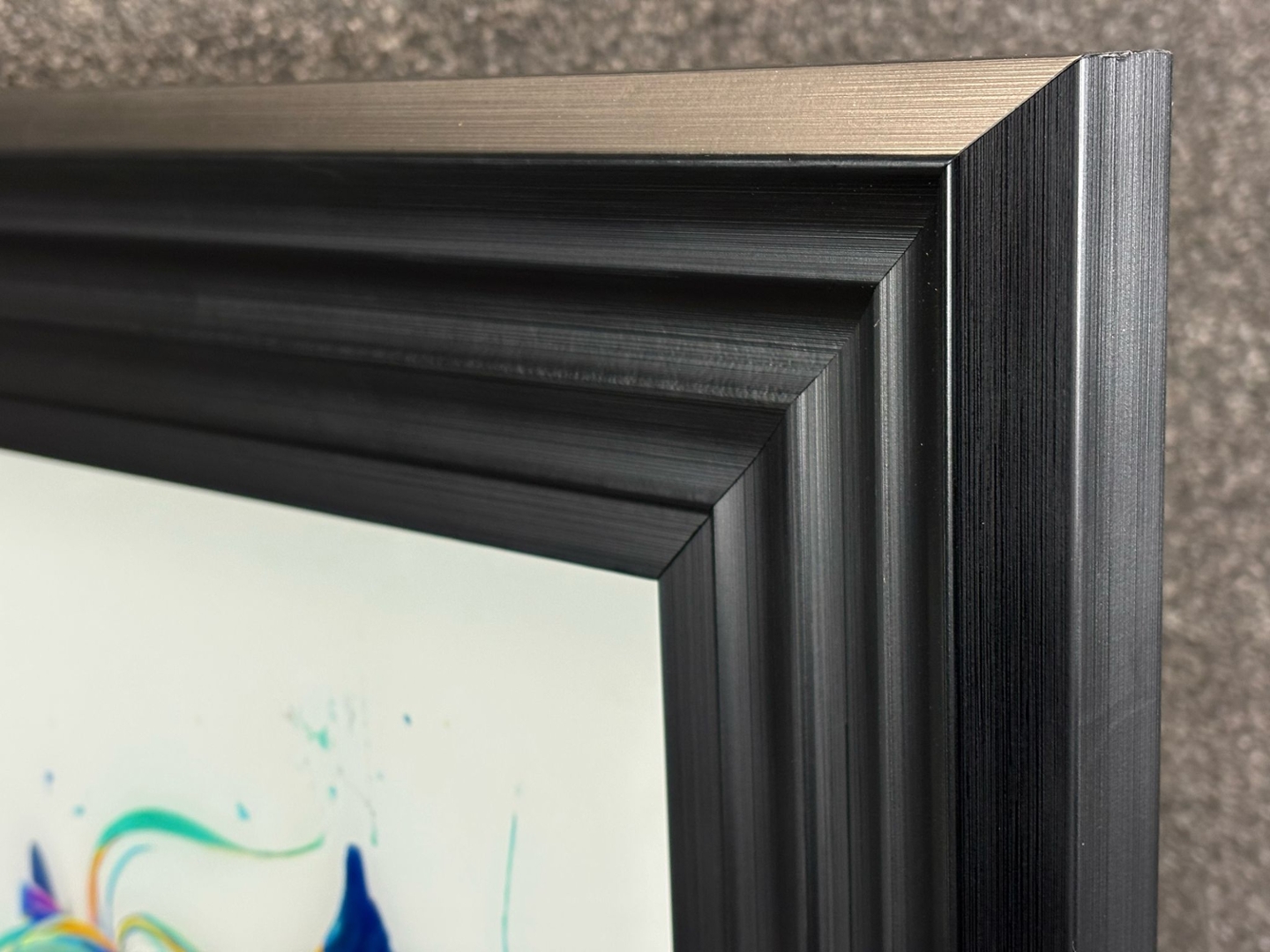 A brand new black-framed liquid art picture of a Colourful Unicorn. Measuring 102cm in height and 72cm in width, this dazzling piece captures a fabulously cool unicorn, decked out in oversized shades and dripping with a rainbow spectrum of vivid colours. From electric blues and purples to fiery pinks and golds, every brushstroke exudes personality and vibrance, transforming this mystical creature into the ultimate icon of fun and flair.