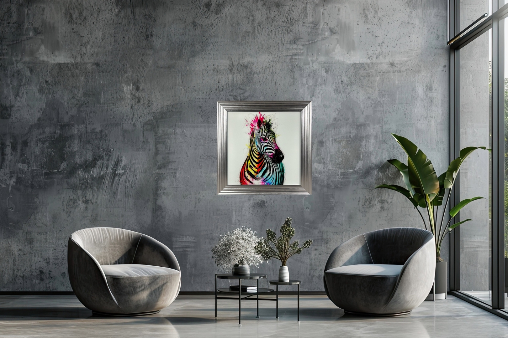 The high-quality liquid art technique adds texture and dimension, giving the piece a glossy, almost three-dimensional finish that catches the light beautifully from every angle. Set within a sleek silver frame, the artwork boasts a clean, polished look that complements both modern and eclectic interiors. Whether you're looking to refresh your living room, office, or hallway, this bold and imaginative zebra artwork makes a powerful statement and is sure to draw admiration from every viewer.