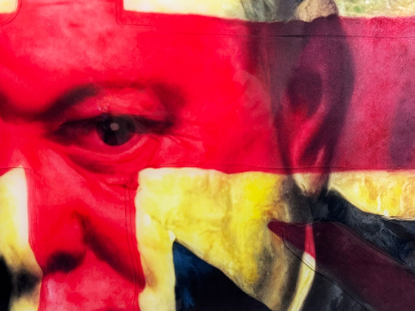 A brand new silver-framed liquid art picture that commands attention, this striking piece showcases an intense and vibrant image of Winston Churchill blended seamlessly with the Union Jack. The high-gloss liquid art finish enhances every colour and contour, giving the flag’s bold tones a luminous depth while Churchill’s expression emerges with a powerful, almost three-dimensional presence.