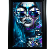 A brand new addition to any collection, the artwork is set within a sleek silver frame that elevates its modern appeal. The frame’s clean lines and reflective surface perfectly complement the dramatic imagery, creating a statement piece that stands out in any interior—whether contemporary, eclectic, or traditionally styled.