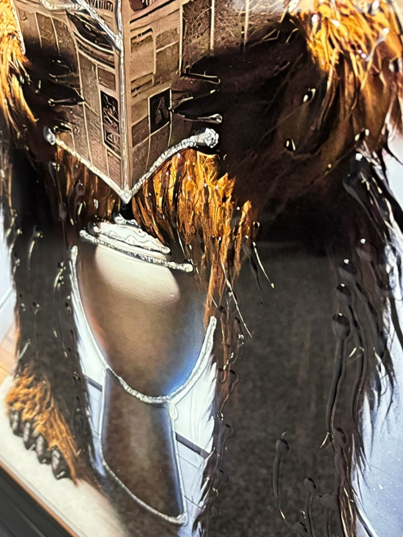 A brand new black framed liquid art picture of Chewbacca Reading The Newspaper.