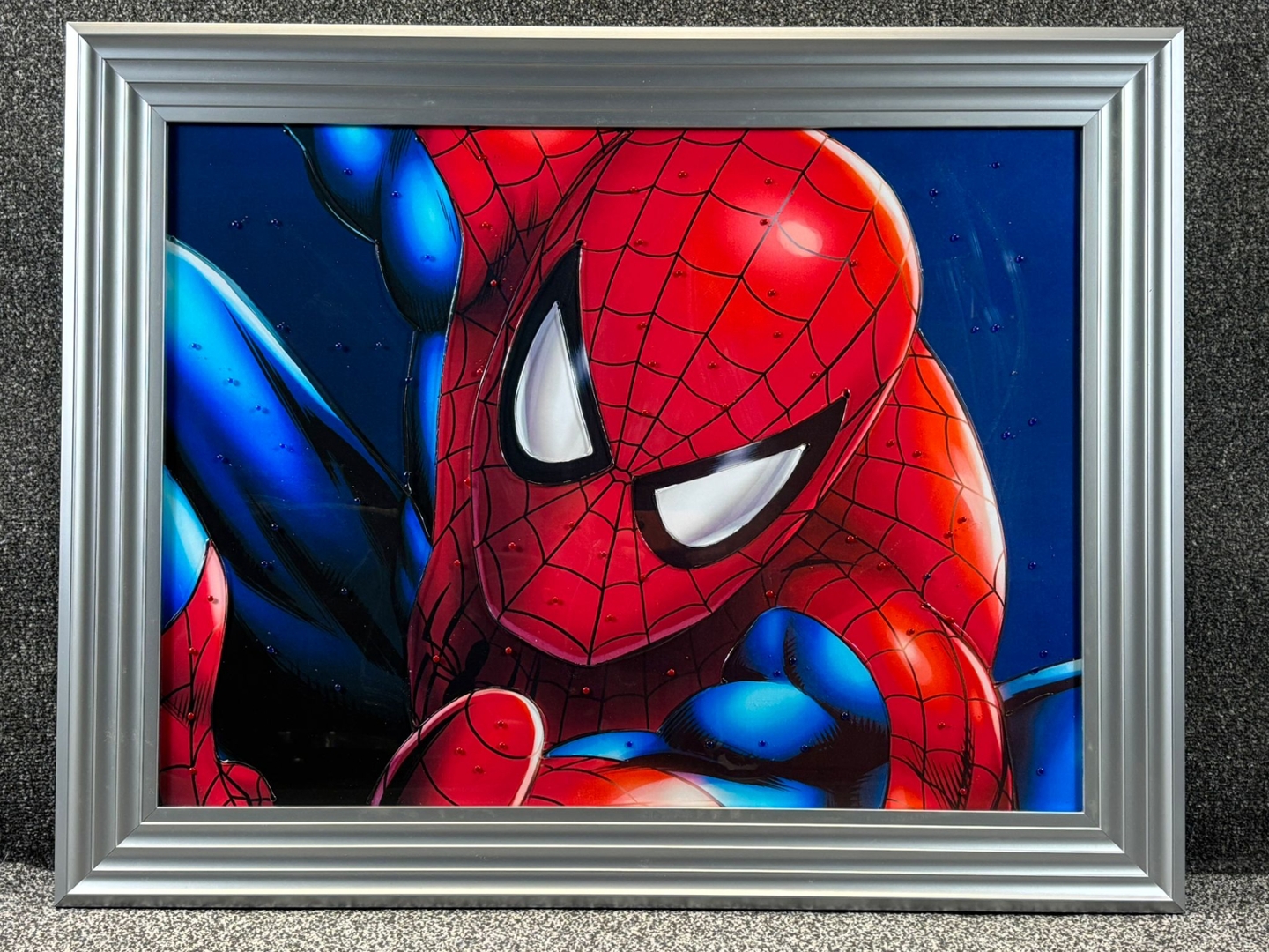 Immerse yourself in the thrilling world of Spiderman with this captivating liquid art picture elegantly framed in silver. Measuring 30" high and 38" wide, this dynamic piece brings the iconic superhero to life in vivid detail. Watch as Spiderman swings into action against a backdrop of swirling colours and textures, creating a sense of movement and energy.