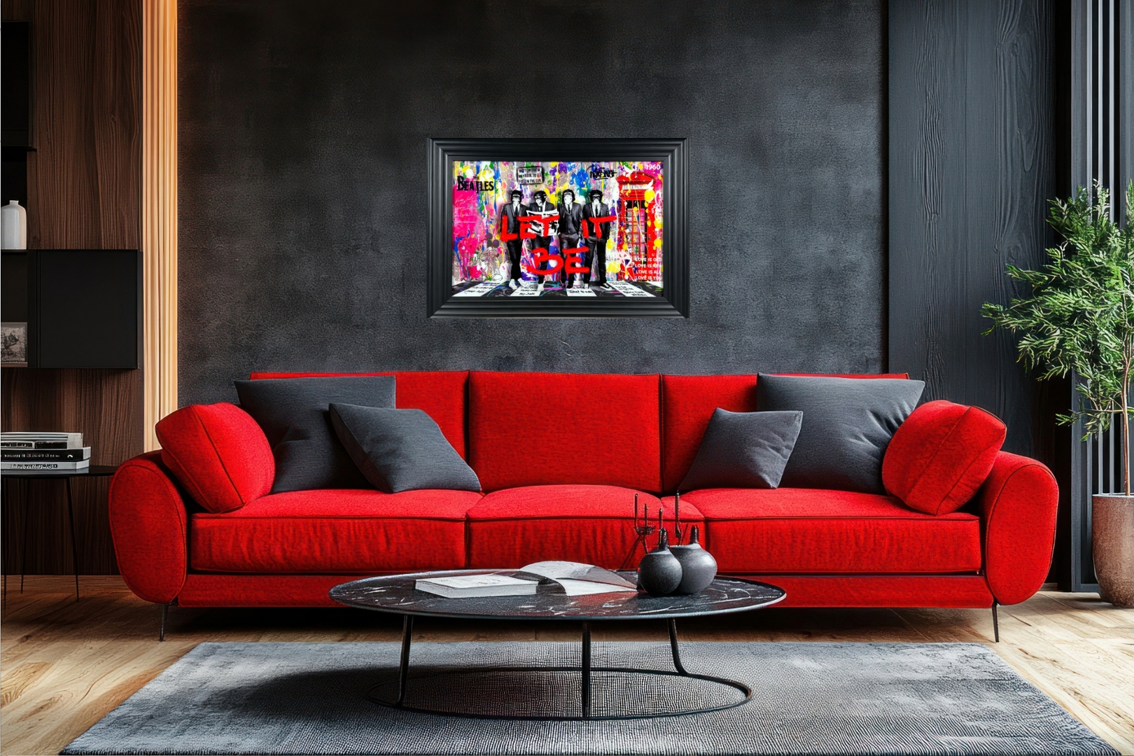 Expertly finished in a sleek black frame, this 72cm x 102cm piece is not just wall art—it’s a celebration of music, humor, and urban creativity. A must-have for any Beatles enthusiast or collector of striking contemporary art!